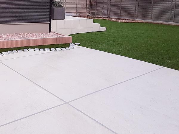 また、コンクリートの目地部分に人工芝を入れるデザインが採用されることもあります。硬い印象になりがちな外構へ手軽に緑を取り入れられ、やわらかな雰囲気を出しやすい手法です。